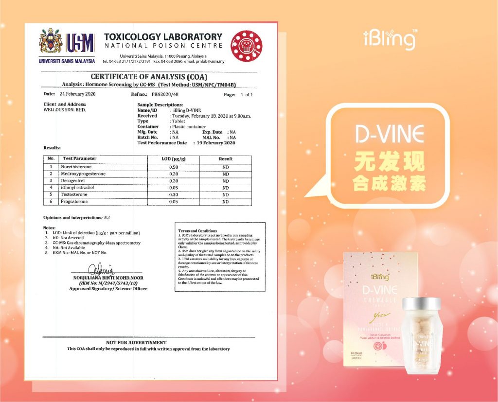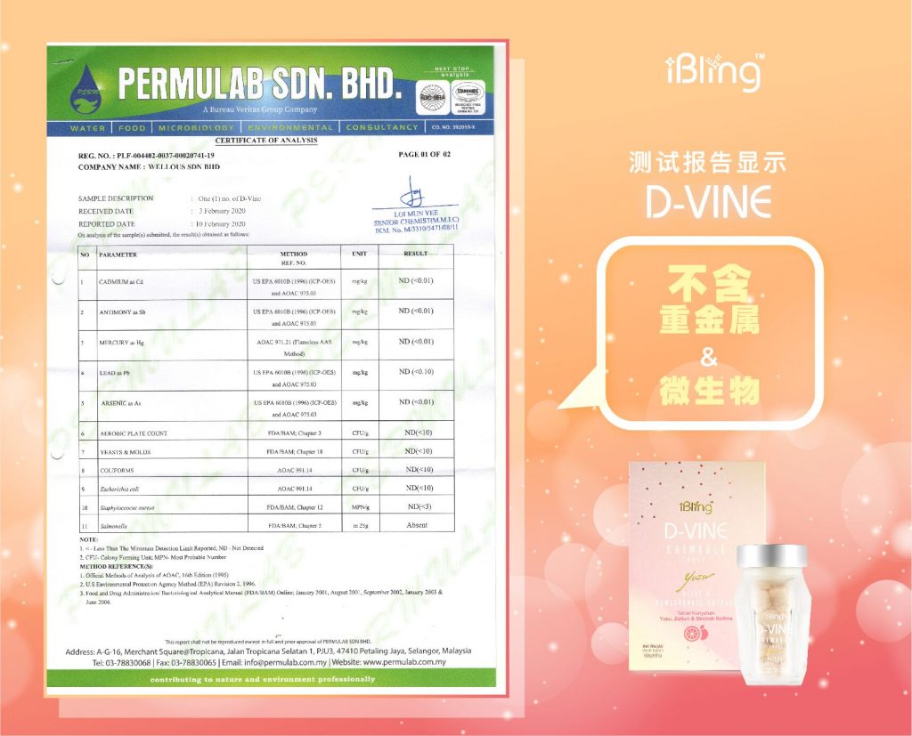 D-VINE胶原蛋白肽来自韩国配方,生产于马来西亚,工厂通过良好生产规范(GMP)的认证。