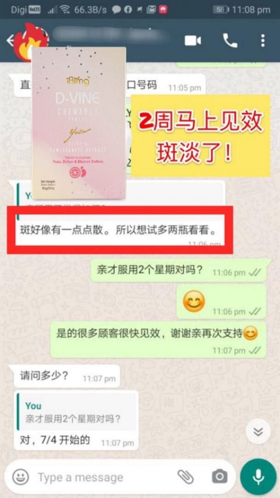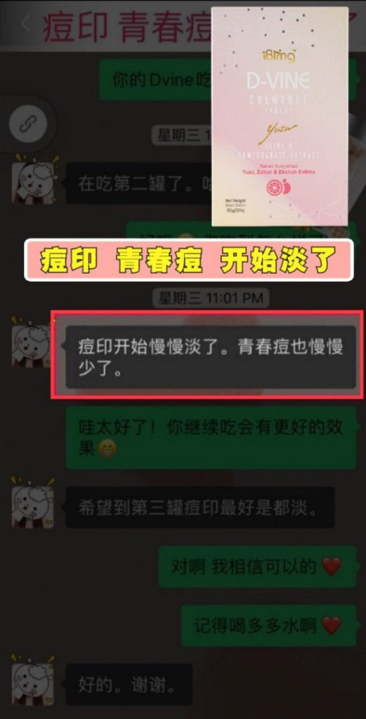 D-VINE胶原蛋白肽中的红石榴提取物使用获得专利的法国 ADS纳米技术,可产生30-40%的多酚,比普通的石榴汁高40倍,有助于减少黑色素细胞的形成,从而改善肤色。它还可以阻隔体内的太阳辐射反应,而且拥有完全的光保护。除此之外,它还有助于减少皮脂产生,从而阻止暗疮痘痘的炎症。因此,暗疮痘痘的产生将受到抑制。红石榴提取物具有抗发炎特性,可帮助减轻炎症。它可以阻止黑色素产生,因而改善肤色。此外,它还含有有助于改善皮肤修护作用。VIQUA石榴提取物具有抗发炎特性,仅有助于减轻炎症, 此外D-VINE 胶原蛋白肽中的胶原蛋白还有助于淡化由于痘痘而引起的痤疮疤痕的出现。